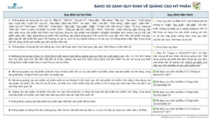Song song với việc bãi bỏ thủ tục này, Điều 33 và Điều 34 Dự thảo cũng đặt ra các yêu cầu về nội dung cũng như cách thức cần tuân thủ khi quảng cáo mỹ phẩm, trong đó có một số yêu cầu đã được quy định tại văn bản quy phạm pháp luật hiện hành, đồng thời cũng có một số các yêu cầu mới. Chi tiết xin mời Quý độc giả theo dõi Bảng so sánh bên dưới đây: